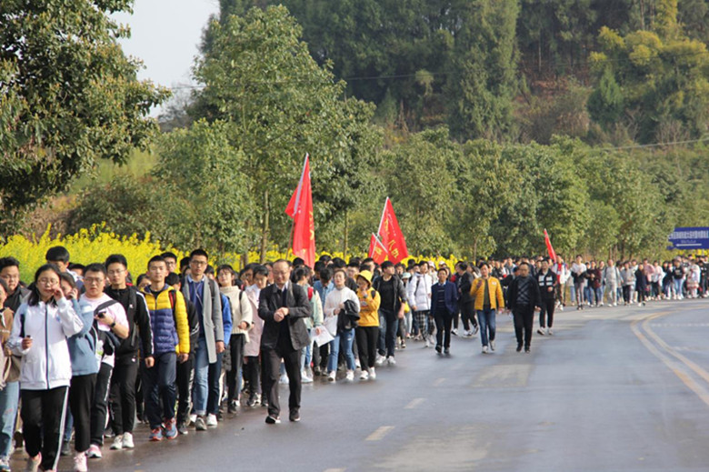 3月14日一早,晨光初露,和風(fēng)習(xí)習(xí),帶著對自然的無限眷戀,滿懷對歷史的無限敬畏,高三全體師生齊聚龍湖校區(qū),在學(xué)校的統(tǒng)一指揮下,35個班級被編為9個方陣,35面旌旗迎風(fēng)翻舞,跟隨兩千多顆跳動的心臟熱切地等待著噴薄的旭日,守望著浸染黎明的緋紅。一支鋼鐵之師,除了具備雄獅的傲慢與力量,還需有大雁的紀(jì)律嚴(yán)明。作為巴中中學(xué)形象的展示窗,王成文副校長對全體學(xué)生在游學(xué)活動中的行為紀(jì)律提出了明確的要求:“除了眷戀和腳印什么也別留下,除了回憶和身影什么也別帶走”。正是帶著這樣的期望和囑托,懷揣著內(nèi)心的悸動和憧憬,高三全體師生朝著本次研學(xué)之旅的終點(diǎn)——南龕山浩蕩前行!