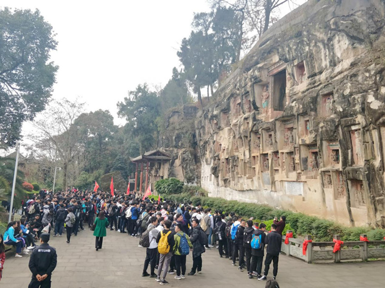 3月14日,在巴中市教育和體育局黨委委員、副局長、主持巴中中學(xué)工作的沈鵬同志的親切關(guān)懷下,經(jīng)過高中一部的周密部署和學(xué)校各部門的通力協(xié)作,高2019屆全體師生和部分家長代表在龍湖校區(qū)執(zhí)行校長王成文和高中一部主任張磊的帶領(lǐng)下開啟了歷時一天的南龕山研學(xué)之旅。本次研學(xué)是在上級主管部門大力支持下的由教育理念引領(lǐng)轉(zhuǎn)向教育實(shí)踐創(chuàng)新的一次重要嘗試和創(chuàng)舉,活動以“重塑人生信仰,續(xù)寫高考華章”為主題,組織全體師生開展了瞻仰將帥碑林、緬懷革命先烈,參觀革命博物館、重溫紅色歷史,觀覽摩崖造像、領(lǐng)略盛唐文化等活動,旨在讓學(xué)生從清新的自然和厚重的歷史中去勾畫自己的人生,從先烈的情懷和無畏的抉擇中去重拾個人的信仰,以堅(jiān)忍之心、不拔之志擊水中流,以動人的音符為自己譜出高考的絕美旋律,以卓越的文字為母校續(xù)寫高考的壯麗詩章。