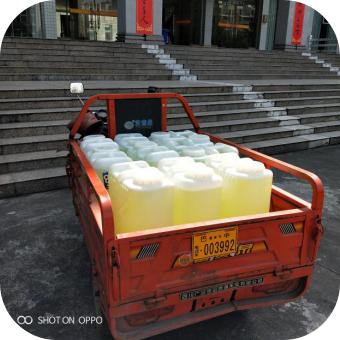 3月19日,巴中中學高2017級16班學生唐丹的家長聽說學校為開學復課還在籌措防控物資,當即想辦法購買了10桶(每桶30公斤)84消毒液用三輪車送到了龍湖校區(qū),并通過班主任轉交給學校統(tǒng)一使用。