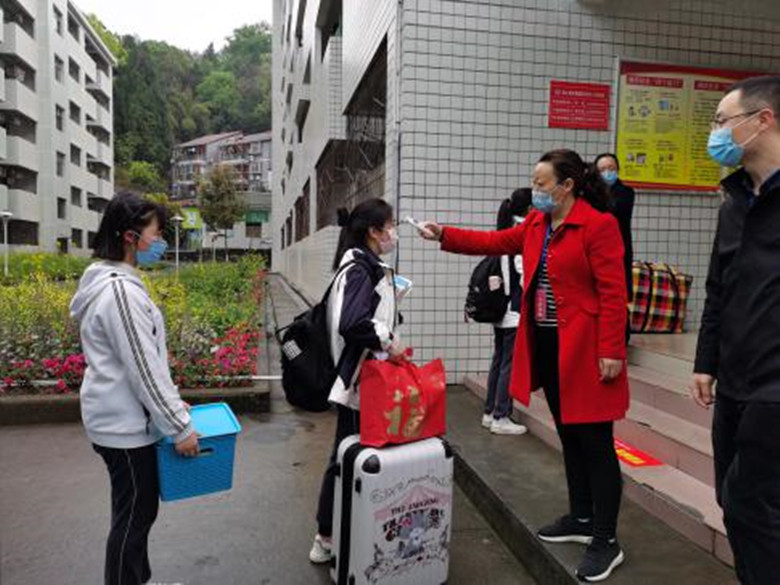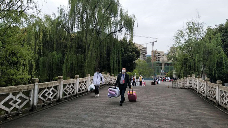 綠樹掩映的美麗校園,經(jīng)過疫情的滄桑,更加欣欣向榮。為了進一步把疫情阻擋在校園外,陪同家長通力配合學校工作,排隊等候在警戒線外。警戒線雖攔住了家長的腳步,卻攔不住他們對孩子關切的目光,看到學校領導、黨員志愿者、老師等幫助孩子們搬運行李忙碌的身影,他們的神色由對孩子的不舍轉為放心,由對孩子的牽掛轉為滿意,“校長親自幫學生搬運行李,這樣的學校誰還不放心!奔议L如是感嘆,神色里充滿了對學校老師的敬意!“學高為師,身正為范”榜樣就是力量,示范就是標桿,這是巴中中學人的教育準則和基礎。