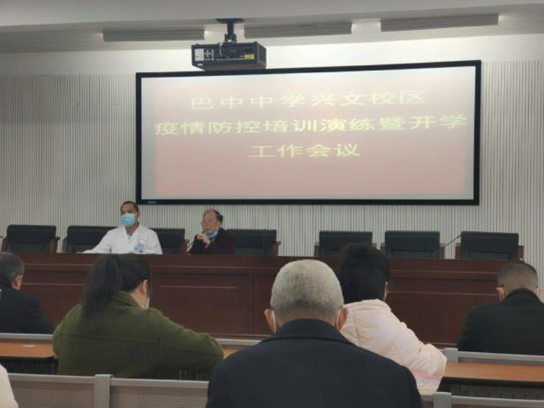 云銷雨霽,微風不燥,在這迷人四月天,我國疫情阻擊戰(zhàn)獲得重大成就,巴中中學也迎來了“超長寒假”后的新學期。為確保全校師生生命健康安全,維護開學復課教育教學秩序,4月3日下午,巴中中學興文校區(qū)執(zhí)行校長趙廷勇主持召開了興文校區(qū)疫情防控培訓演練暨開學工作會議。會上,興文校區(qū)衛(wèi)生副校長楊智斌作了防疫知識講座。