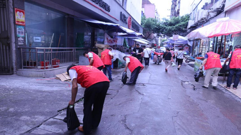 地點(diǎn):步行街、中城街。黨員志愿者在社區(qū)的安排下,深入社區(qū)各個(gè)角落、各個(gè)街道開展垃圾清理行動(dòng)。雖然天空下著小雨,路面濕漉漉的,但這不能阻擋黨員志愿者開展創(chuàng)文工作的熱情。社區(qū)街道上、角落里的煙頭、紙屑、果皮等垃圾盡收袋中。