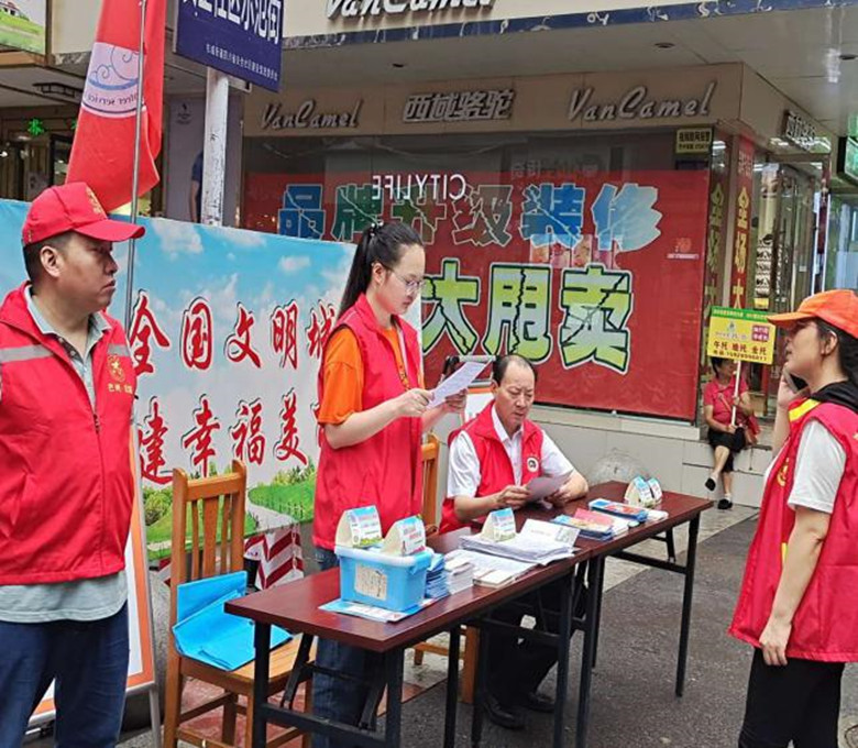 地點(diǎn):步行街路口。部分黨員志愿者向過(guò)往行人、居民、商鋪店主發(fā)放創(chuàng)建文明城市宣傳資料,并積極耐心地講解社會(huì)主義核心價(jià)值觀、創(chuàng)建全國(guó)文明城市、志愿服務(wù)等方面的知識(shí),使廣大群眾充分了解創(chuàng)文的相關(guān)知識(shí),引導(dǎo)廣大居民爭(zhēng)做文明人,并積極主動(dòng)地參與到我市創(chuàng)建全國(guó)文明城市中去。