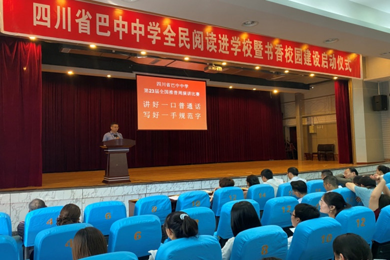 副校長(zhǎng)趙仕安宣布《四川省巴中中學(xué)書香校園建設(shè)實(shí)施方案》正式啟動(dòng)。