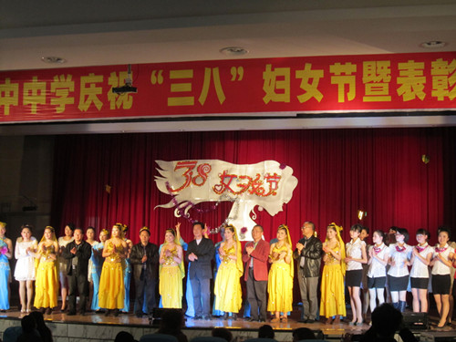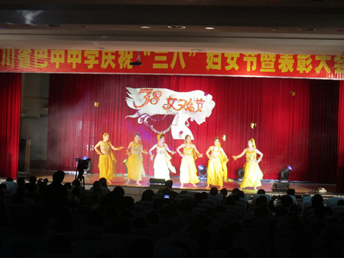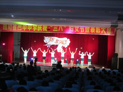 2013年3月7日下午,巴中中學(xué)云屏校區(qū)多功能報(bào)告廳里燈火輝煌、人頭攢動(dòng),學(xué)校領(lǐng)導(dǎo)、全體女教職工及部分男教師代表在這里匯聚一堂,熱烈慶!叭恕眿D女節(jié),表彰巾幗建功先進(jìn)個(gè)人。