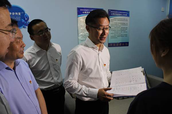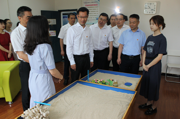 高市長與我校心理老師李崢、翁慧在巴中市未成年人心理成長指導(dǎo)中心即巴中中學(xué)心理咨詢中心親切交談,向她們了解在校學(xué)生的心理咨詢情況和心理健康教育狀況。交流中他表示,當(dāng)前學(xué)生的心理健康問題愈發(fā)突出,尤其是高三畢業(yè)生;希望心理老師耐心與學(xué)生交流、關(guān)心學(xué)生動態(tài)、用心輔導(dǎo)學(xué)生,切實(shí)幫助學(xué)生解決心理問題。在參觀了心理咨詢中心的沙盤模擬室、情緒發(fā)泄室和個別交流室后,高市長對我校在進(jìn)行心理教育方面提出了要求,寄予了厚望。