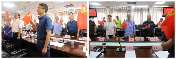 與會人員全體起立,手中揮舞著小紅旗,齊唱《沒有共產(chǎn)黨就沒有新中國》,并集體收看了“慶祝中國共產(chǎn)黨成立100周年‘七一勛章’頒授儀式”。