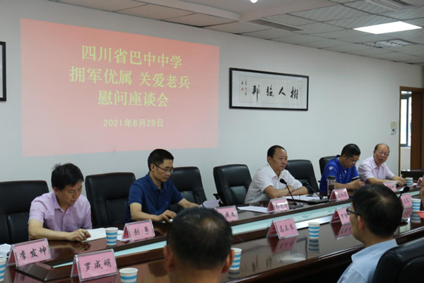 為營造良好的擁軍優(yōu)屬、關(guān)心關(guān)愛退役軍人社會氛圍,把黨的關(guān)懷和溫暖送到烈軍屬及退役軍人的心中。6月29日,巴中中學(xué)召開慶祝中國共產(chǎn)黨成立100周年“擁軍優(yōu)屬、關(guān)愛老兵”慰問座談會。校級領(lǐng)導(dǎo)班子成員、13名退役軍人和2名軍屬參加會議,會議由校黨委專職副書記馬松濤主持。