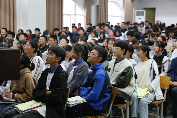 在“自我激勵篇”環(huán)節(jié),孫躍老師讓每個同學(xué)給未來三年的自己寫一句話,并讓在場的所有人來作見證,以此來鞭策激勵他們更好地前行。現(xiàn)場同學(xué)積極參與,把整個讀書分享活動帶向高潮。