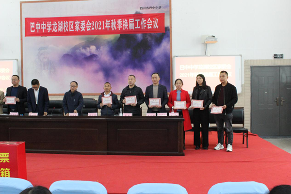 全體委員返回報告廳,會議進入第二階段。首先,學(xué)校副校長趙仕安宣讀家委會主任、副主任、秘書長和副秘書長名單,并為他們頒發(fā)了聘書;接著,家委會主任溫林平宣讀家委會所屬6部負(fù)責(zé)人及家長學(xué)校校長、副校長、教務(wù)主任和辦公室主任名單。然后,溫林平代表新一屆家委會領(lǐng)導(dǎo)班子講話。在講話中,他表達(dá)了對學(xué)校領(lǐng)導(dǎo)及家委會委員的感謝;他提到教育必須依靠家庭、學(xué)校和社會等各方面的通力合作;他還代表全體委員表態(tài),愿大家攜手將“巴中中學(xué)龍湖校區(qū)家委會”打造成學(xué)校教育教學(xué)工作的“智囊團”,充分發(fā)揮紐帶作用,共同維護學(xué)校形象,宣傳學(xué)校品牌,進一步提高學(xué)校知名度,使學(xué)校各項工作再上新臺階。