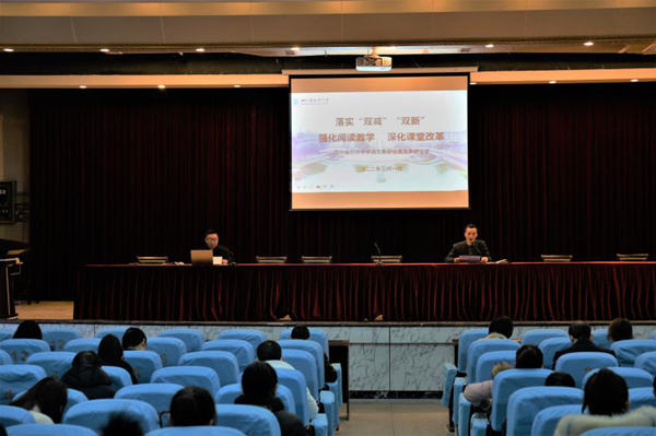 他還從書(shū)面作業(yè)、學(xué)科探究性作業(yè)、學(xué)科實(shí)踐性作業(yè)、跨學(xué)科綜合性作業(yè)等方面詳細(xì)解讀了四川省教育科學(xué)院出臺(tái)的《初中語(yǔ)文學(xué)科作業(yè)設(shè)計(jì)與使用指導(dǎo)意見(jiàn)》,并結(jié)合我校初中語(yǔ)文實(shí)際提出了具體的要求。會(huì)上,初中語(yǔ)文教研組組長(zhǎng)唐敬雄老師傳達(dá)并解讀了《初中語(yǔ)文學(xué)科作業(yè)設(shè)計(jì)與使用指導(dǎo)意見(jiàn)》,安排了本學(xué)期初中語(yǔ)文教研工作。他強(qiáng)調(diào),面對(duì)“雙減”政策,我們要把握好“減”與增“”的關(guān)系,“減”不是目的,而是手段;“減”是為了更好地“增”’,“減”的只是學(xué)生過(guò)重的作業(yè)負(fù)擔(dān),“增”的應(yīng)該是學(xué)生快樂(lè)學(xué)習(xí)的體驗(yàn)、高效學(xué)習(xí)的質(zhì)量!半p減”的突圍之路主要還是在課堂,課堂教學(xué)要回歸學(xué)生的學(xué)習(xí),讓學(xué)習(xí)看得見(jiàn);課堂教學(xué)還要回歸學(xué)生主體,讓成長(zhǎng)更自然。