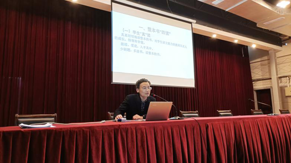 巴中中學(xué)高一年級(jí)語(yǔ)文備課組長(zhǎng)鮮智勇老師作了題為《關(guān)于整本書(shū)閱讀的一點(diǎn)思考》的交流發(fā)言。他提到,興文校區(qū)高一年級(jí)語(yǔ)文組率先推進(jìn)“陽(yáng)光閱讀”活動(dòng),全級(jí)學(xué)生參與閱讀,全組教師參與指導(dǎo),上學(xué)期舉辦了三次讀書(shū)分享會(huì),在全校掀起了閱讀的熱潮。鮮智勇老師強(qiáng)調(diào),組織閱讀活動(dòng)要把握選書(shū)、選題、選讀法、選作品的方法原則。選書(shū)要選適齡書(shū)、選點(diǎn)經(jīng)典書(shū)、選些熱度書(shū)、選點(diǎn)關(guān)聯(lián)書(shū)、選點(diǎn)深度書(shū)、選點(diǎn)雜書(shū);選題要確定母題、議題和問(wèn)題;讀法上嘗試了研究性學(xué)習(xí)的方法:①在興趣中學(xué)習(xí)②在過(guò)程中學(xué)習(xí)③在分享中學(xué)習(xí)④在群文閱讀中學(xué)習(xí);評(píng)選學(xué)生作品堅(jiān)持代表性、覆蓋性原則,小組初選出優(yōu)秀作品、班內(nèi)分享全班最佳作品、年級(jí)分享年級(jí)最佳作品。讀書(shū)分享活動(dòng),讓學(xué)生勞動(dòng)得到尊重,讓學(xué)生獲得成就感,讓成就感化為繼續(xù)讀書(shū)的動(dòng)力。