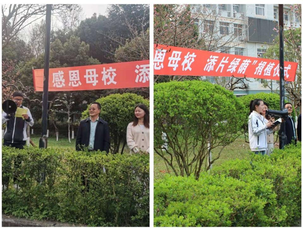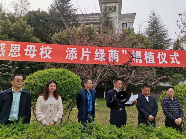 王成文在致辭中強(qiáng)調(diào),校區(qū)力爭(zhēng)把“感恩母校 添片綠蔭”這一好事辦好、辦實(shí),讓她成為學(xué)校一個(gè)響當(dāng)當(dāng)?shù)牡掠放苹顒?dòng)。他表示,學(xué)生把捐植的樹留在母校,卻把感恩的心帶到社會(huì)中,帶到人生中;師生要攜手讓校園里每一棵樹、每一株花、每一片草都會(huì)說話,要讓它們背后都有一個(gè)感人的故事。