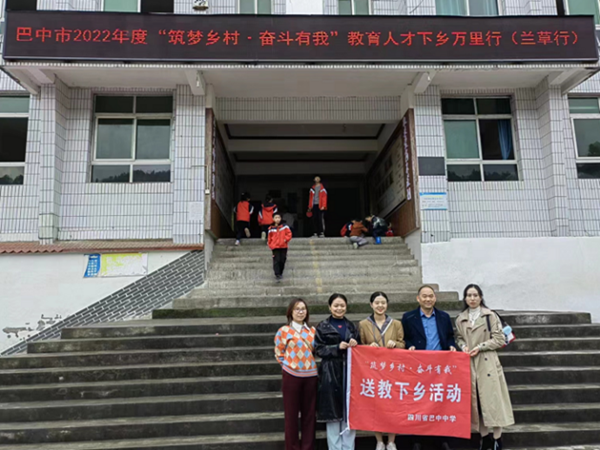 有一種力量叫結(jié)伴而行,有一種引領(lǐng)叫送教下鄉(xiāng)。為貫徹落實(shí)《中共巴中市委組織部等10部門關(guān)于開展“筑夢(mèng)鄉(xiāng)村·奮斗有我”人才下鄉(xiāng)萬里行活動(dòng)的通知》精神,精準(zhǔn)幫扶農(nóng)村薄弱學(xué)校,促進(jìn)城鄉(xiāng)教育均衡發(fā)展,2022年10月28日,四川省巴中中學(xué)組織開展了“筑夢(mèng)鄉(xiāng)村·奮斗有我”送教下鄉(xiāng)活動(dòng),研訓(xùn)部主任楊棟材帶隊(duì),云屏校區(qū)研訓(xùn)負(fù)責(zé)人物理老師米曉紅、數(shù)學(xué)教研組長(zhǎng)王小清、語文備課組長(zhǎng)姚霄、英語張琳等四位老師前往平昌縣蘭草九義校送課。