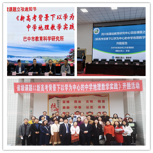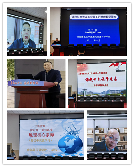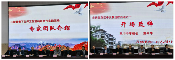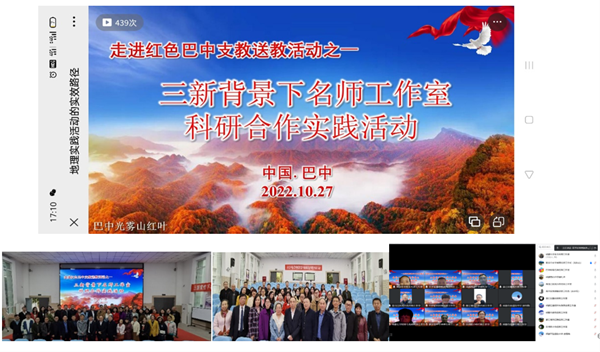 2022年10月巴中市彭韜名師工作室和成都市王桂玉工作室攜手省內(nèi)外12個(gè)名師工作室,及四川省科學(xué)研究院學(xué)術(shù)委員會委員、普通高中教育研究所副所長、四川省地理教研員張白峽教授;教育部教師培訓(xùn)國培專家、四川省義務(wù)教育地方課程教材審查專家、四川師范大學(xué)羅懷良教授等特邀領(lǐng)導(dǎo)專家在巴中中學(xué)共同舉辦“走進(jìn)紅色巴中支教送教系列活動——三新背景下名師工作室科研合作實(shí)踐”活動。