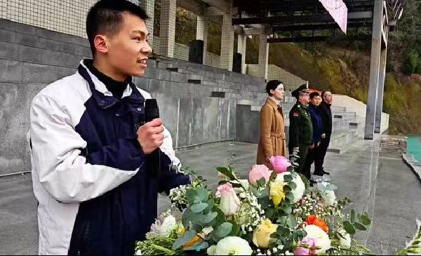 儀式上,來自巴中中學(xué)高三9班的屈慶在發(fā)言中分享了家庭教育為他播下了一顆向往軍營的種子,而這顆種子能夠萌芽、生長、開花得益于自己初高中成長階段,在巴中中學(xué)接受的學(xué)校教育,特別是在學(xué)校舉行的每次愛國主題教育活動(dòng)、國防教育活動(dòng)和紅色文化基地研學(xué)活動(dòng)都讓自己心潮澎湃,對(duì)軍旅生活愈加向往;學(xué)習(xí)過程中一邊加強(qiáng)知識(shí)學(xué)習(xí)和體育鍛煉,另一邊注重意志品質(zhì)提升。今年他已順利通過空軍體檢,目前全力沖刺高考,在此,他倡議同學(xué)們要擁有“清澈的愛,只為中國”這樣的愛國情懷。