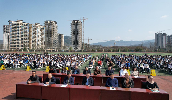 陽(yáng)春三月,春意盎然;憧憬六月,熱血沸騰。為激勵(lì)初三學(xué)子堅(jiān)定信念,頑強(qiáng)拼搏,以良好的心態(tài)面對(duì)中考,在校區(qū)統(tǒng)籌、年級(jí)部和校團(tuán)委初中團(tuán)總支的組織下,3月3日興文校區(qū)初2023屆在操場(chǎng)上隆重舉行“百日竟渡,贏戰(zhàn)中考”誓師大會(huì)。學(xué)校黨委書(shū)記彭中華,興文校區(qū)黨總支書(shū)記趙廷勇,副校長(zhǎng)、興文校區(qū)執(zhí)行校長(zhǎng)劉勇及校區(qū)干部出席活動(dòng),初三年級(jí)全體師生及部分家長(zhǎng)代表參加本次活動(dòng)。