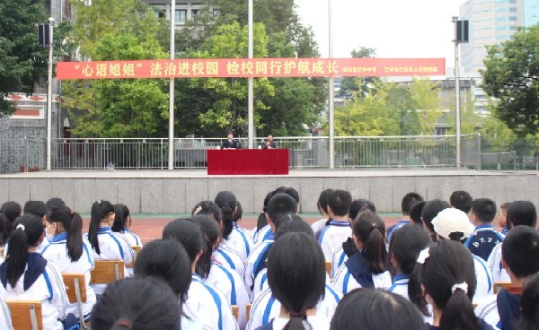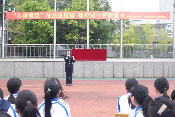 為進(jìn)一步加強(qiáng)法治安全教育,防范和遏制校園欺凌事件發(fā)生,提高同學(xué)們的安全防范意識(shí)和自我保護(hù)能力,構(gòu)建平安和諧校園,10月26日,巴中市巴州區(qū)人民檢察院黨組成員、副檢察長(zhǎng)、“心語(yǔ)姐姐”品牌創(chuàng)建人劉東一行到巴中中學(xué)云屏校區(qū)開(kāi)展“‘心語(yǔ)姐姐’法治進(jìn)校園,檢校同行護(hù)航成長(zhǎng)”法治講座宣傳活動(dòng)。云屏校區(qū)黨總支書(shū)記李發(fā)坤主持活動(dòng)。云屏校區(qū)全體師生近3000人參加活動(dòng)。