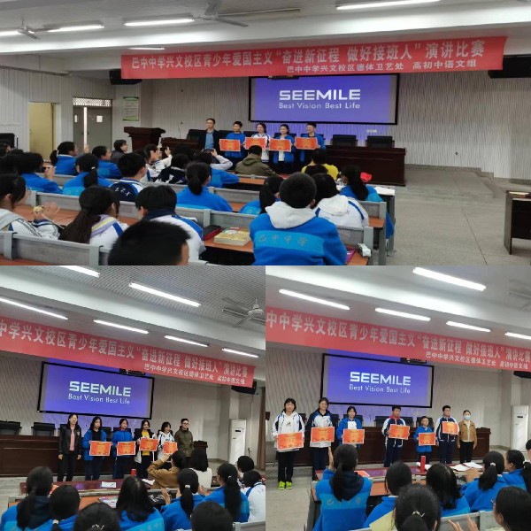 為扎實推進習近平新時代中國特色社會主義思想主題教育,認真落實《新時代愛國主義教育實施綱要》,引導學生學習新思想,厚植愛黨、愛國、愛社會主義情感,激發(fā)努力成為社會主義合格建設者和可靠接班人的使命擔當,培養(yǎng)學生社會責任感和家國情懷,11月8日,巴中中學興文校區(qū)以“奮進新征程,做好接班人”為主題的演講比賽在多功能報告廳隆重舉行。來自初二、初三年級推薦的16名選手帶來了精彩的演講。