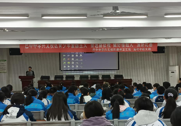 在比賽點評環(huán)節(jié),巴中中學語文教研組長鮮智勇老師作了發(fā)言。他首先充分肯定了參賽選手認真的準備以及老師的認真指導;接著轉達了彭中華書記、熊維壯校長的殷切期望:巴中中學的學生,身上須有云屏書院的翰墨味和書香味。最后希望同學們積極參加整本書閱讀,書法比賽、演講比賽等活動,給自己的成長檔案增添精彩的一頁,做個腹中有錦繡,舌燦若蓮花的云屏棟梁材。