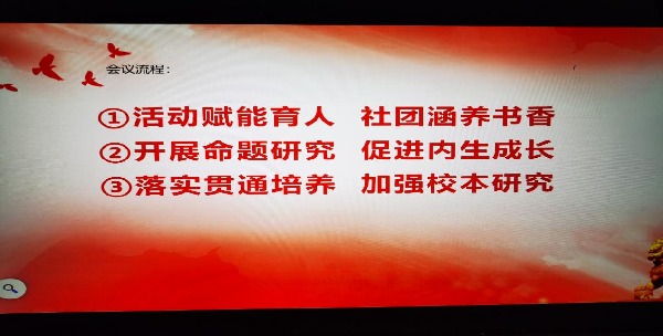 智勇組長圍繞語文學(xué)科教學(xué)教研,從“活動賦能育人,社團(tuán)涵養(yǎng)書香”“開展命題研究,促進(jìn)內(nèi)生成長”“落實貫通培養(yǎng),加強校本研究”三個方面作了工作匯報。