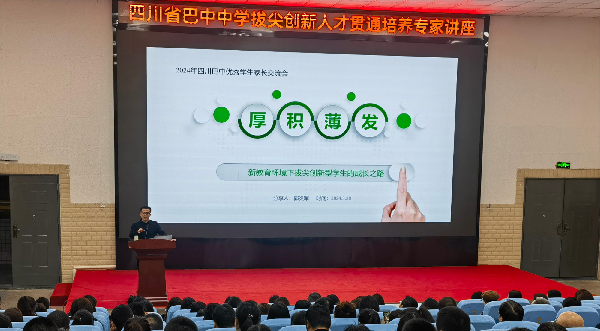 三月花舞校園春,漫天星耀少年智。3月28日,巴中中學(xué)拔尖創(chuàng)新人才貫通培養(yǎng)專家講座在龍湖校區(qū)多功能報告廳舉行。國培項目首席專家、人民教育出版社課程標(biāo)準(zhǔn)高中物理教材培訓(xùn)團專家郭炎軍老師作《厚積薄發(fā)—新教育背景下拔尖創(chuàng)新學(xué)生的成長之路》專題講座,300余名拔尖創(chuàng)新計劃學(xué)生家長參加講座。