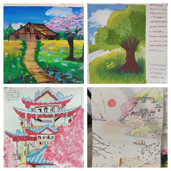在攝影和繪畫作品中,同學(xué)們還融合了詩詞、散文、隨筆作品多種文體的特點,詩與畫在意境上達到和諧統(tǒng)一。