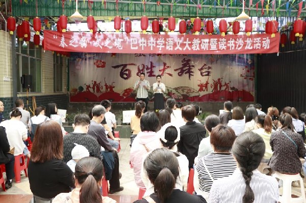 本次活動分為沉浸閱讀、才藝展示和交流探討三個環(huán)節(jié)。活動由王娜、羅浩主持。活動伊始,巴中中學語文教研組組長鮮智勇老師指出語文教師應在閱讀中成長,在思考中提高,鼓勵巴中中學語文人認真閱讀,積極探討。