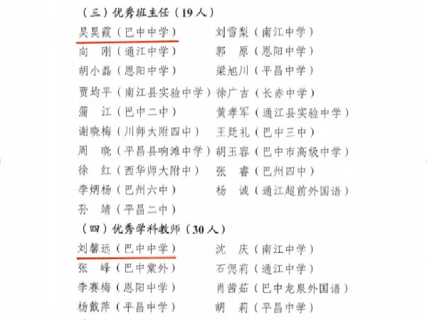 劉馨遠(yuǎn)榮獲“巴中市2023年度普通高中教育優(yōu)秀學(xué)科教師”稱號。