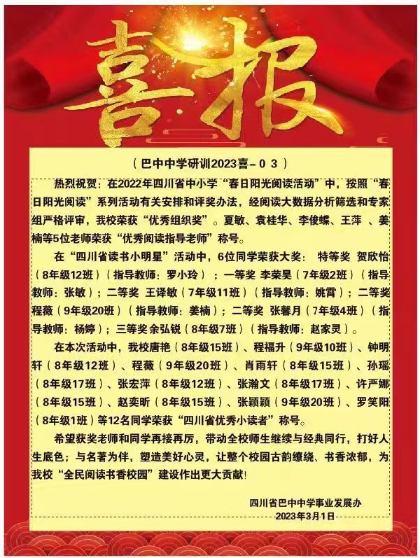 喜報(bào)(巴中中學(xué)研訓(xùn)2023喜—03)
