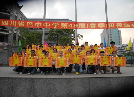 2013年3月29日,巴中中學(xué)云屏校區(qū)運(yùn)動(dòng)場(chǎng)紅旗招展,鼓樂喧天,歡歌如潮,學(xué)校第四十九屆春季田徑運(yùn)動(dòng)會(huì)隆重舉行。本次田徑運(yùn)動(dòng)會(huì)設(shè)男、女子競(jìng)賽項(xiàng)目共12項(xiàng),全校共計(jì)723名運(yùn)動(dòng)員、23名教師參加。經(jīng)過兩天緊張、激烈的角逐,在班主任、裁判員和志愿者同學(xué)的共同努力下,運(yùn)動(dòng)會(huì)圓滿順利地結(jié)束。