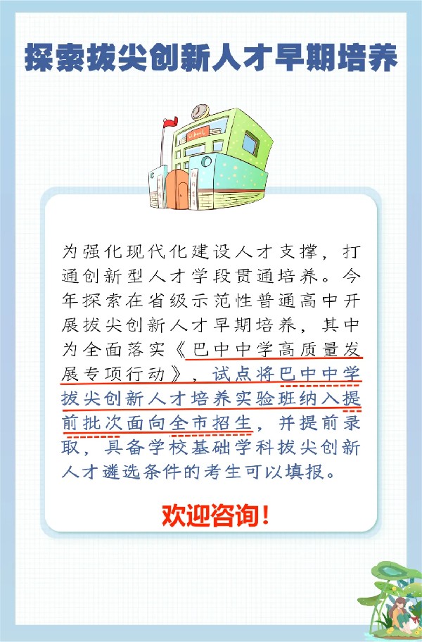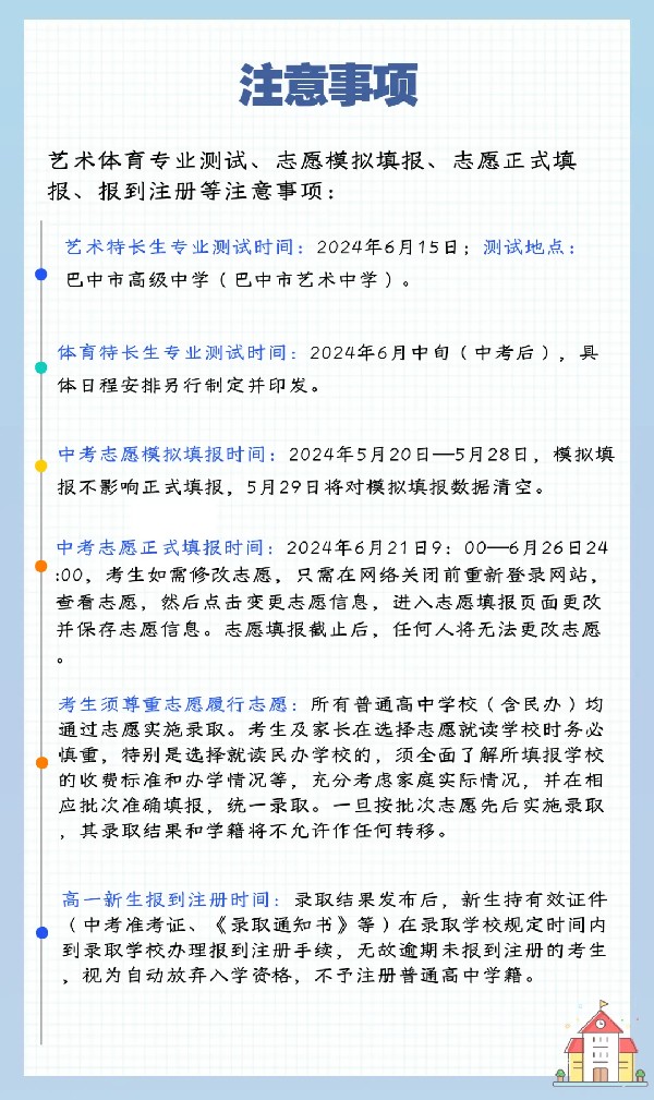 5月6日,巴中市教育局印發(fā)了《巴中市2024年普通高中招生實施辦法》,今年全市普通高中招生政策主要有哪些內(nèi)容和注意事項?