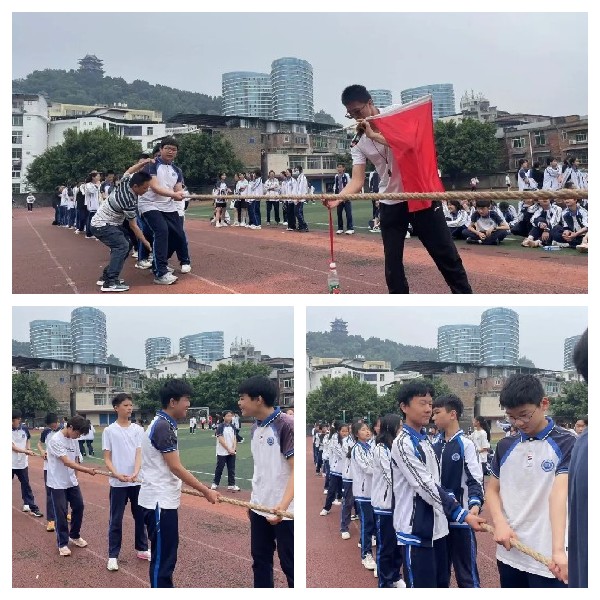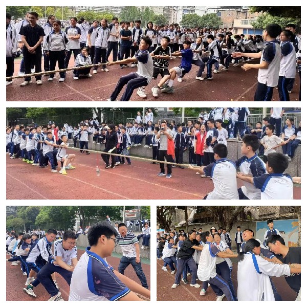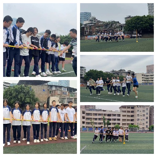 隨著老師一聲令下,哨聲響起,比賽正式開始。只見學(xué)生們蹲下馬步、雙手握繩,瞬間拉開架勢,大"賽"一觸即發(fā)。雙方隊(duì)員緊咬牙關(guān),使出了"洪荒之力"。 同學(xué)們或馬步、或弓步,雙手緊握繩子,身體后仰,呼喊著口號,邁動著步伐。即使汗流浹背、筋疲力盡也依舊頑強(qiáng)拼搏,青春的汗水在繩索的拉扯中閃耀著光彩。 比賽現(xiàn)場,觀看比賽的學(xué)生熱情也被點(diǎn)燃,他們?yōu)榘嗉墔①愓邆兗佑椭,每一次繩索的晃動都牽動著他們的心弦。而當(dāng)一方終于將繩索拉過中線,現(xiàn)場爆發(fā)出熱烈的掌聲和歡呼聲,這是對勝利者的贊美,也是對所有參賽者堅(jiān)韌不拔精神的肯定。