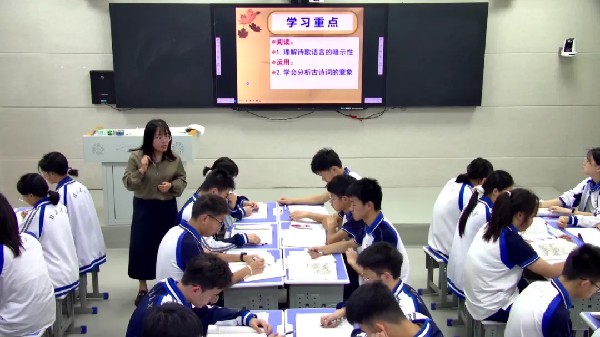 第一堂課《說“木葉”》由吳昕老師執(zhí)教。吳昕老師循循善誘,帶領(lǐng)學(xué)生條分縷析,走進(jìn)文本,幫助學(xué)生理解詩歌語言的暗示性,凸顯了學(xué)生的主體作用。吳老師啟示學(xué)生學(xué)以致用,在詩歌鑒賞中注重對(duì)意象的細(xì)細(xì)體會(huì),找到一條從平常世界進(jìn)入詩歌世界的通道。