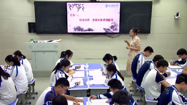 李茹瀾老師帶領(lǐng)學(xué)生在把握《擬行路難(其四)》《臨安春雨初霽》兩首詩歌情感的基礎(chǔ)上,探討逆境中的生命旋律帶給學(xué)生的啟示。李老師通過學(xué)生自由誦讀、學(xué)生代表朗誦、欣賞名家范讀等多種方式,以沉浸式誦讀喚起學(xué)生的情感共鳴,體會(huì)詩人不甘屈服命運(yùn)安排的抗?fàn)幣c掙扎。