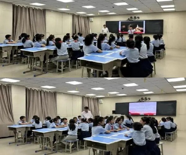 第一堂課是詹愛春老師向五年級學(xué)生講授的《沒有共產(chǎn)黨就沒有新中國》。該堂課以《沒有共產(chǎn)黨就沒有新中國》這首歌曲為線索,設(shè)置了三個環(huán)節(jié):回望歷史,感悟中國共產(chǎn)黨精神;放眼當(dāng)前,感受中國共產(chǎn)黨偉大;展望未來,緊跟中國共產(chǎn)黨步伐。詹老師帶領(lǐng)學(xué)生了解中國共產(chǎn)黨成立以來的重大歷史事件,分享身邊優(yōu)秀的黨員故事,展望未來的美好愿望,引領(lǐng)學(xué)生在互動中樹立正確的價值觀和人生觀,深刻領(lǐng)悟中國共產(chǎn)黨的領(lǐng)導(dǎo)作用,培養(yǎng)了學(xué)生的愛國情感和社會責(zé)任感。