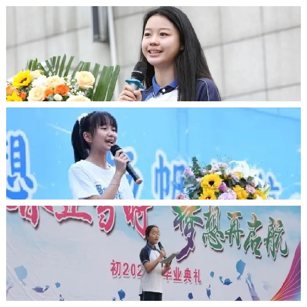 云屏學生代表張宏萍、興文學生代表鄧正陽帶領初三畢業(yè)生回顧了披荊斬棘的三年、拼搏奮斗的三年,更表明了奔赴星辰大海的決心與信心。