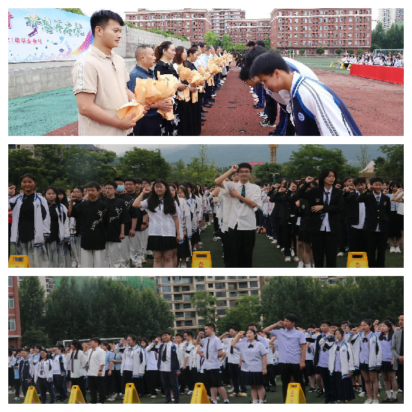 三年師恩,情深難忘。各畢業(yè)年級學生代表手捧鮮花,緩步上前,為辛勤耕耘的老師們獻上鮮花,以此表達對他們無私奉獻的感激之情。