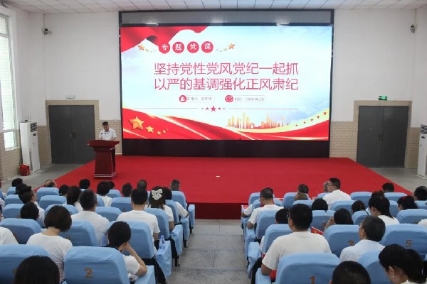 黨委書記彭中華以《堅持黨性黨風黨紀一起抓,以嚴的基調(diào)強化正風肅紀》為題,給學校全體黨員干部上了堂專題黨課,他強調(diào),一要深刻認識不正之風的政治本質(zhì)和政治危害;二要深刻把握守紀律講規(guī)矩的內(nèi)涵要義;三要深刻把握展未來才能風清氣正譜新篇。