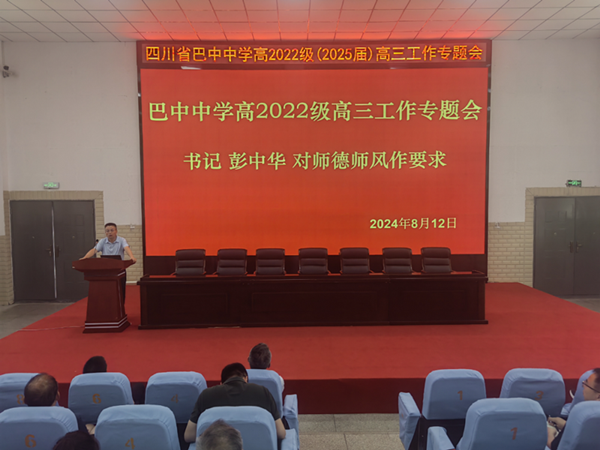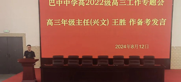 為進(jìn)一步加強高三教育教學(xué)管理、提升教育教學(xué)質(zhì)量,四川省巴中中學(xué)于2024年8月12日召開了高2022級高三工作專題會議。學(xué)校領(lǐng)導(dǎo)班子成員、高三年級全體教師出席了會議。會議旨在科學(xué)規(guī)劃未來,凝聚全體師生的智慧和力量,共同書寫高考新篇章,推動學(xué)校高質(zhì)量發(fā)展邁上新臺階