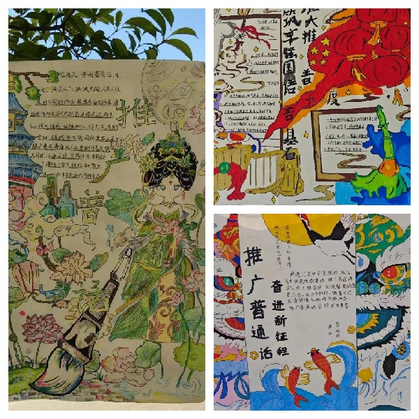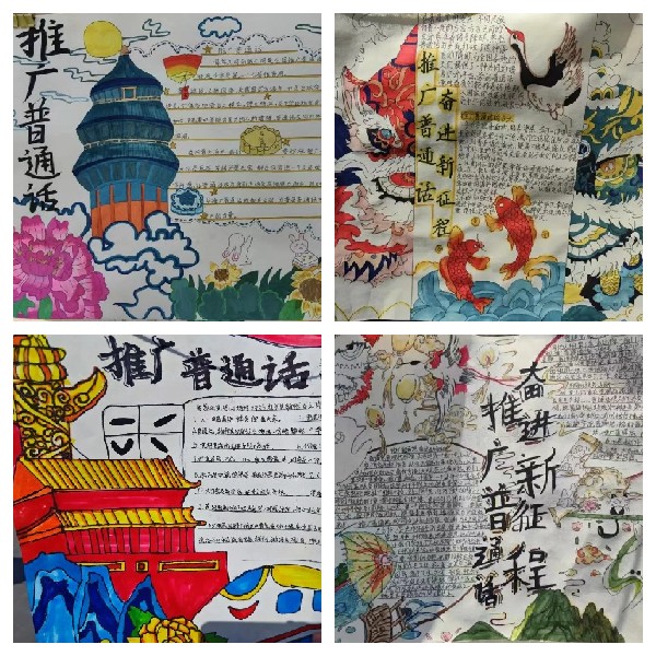 一幅幅精美的手抄報無一不彰顯著孩子們對說好普通話的執(zhí)著與追求。渲染描摹,只為將說好普通話,從我做起,從現(xiàn)在做起的觀念廣而告之!捌胀ㄔ捠沁B接56個民族的橋梁,也是走向世界的通行證!