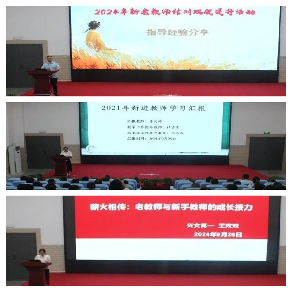 興文校區(qū)執(zhí)行校長楊棟材解讀我!扒嗨{工程”實施方案,明確“結(jié)對”具體要求,宣布 2024 年新老教師結(jié)對名單。