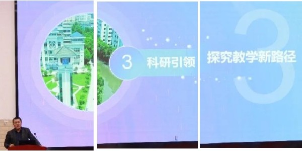 高中數(shù)學(xué)教研組長(zhǎng)楊子龍老師作《構(gòu)建以“學(xué)”為中心的高中數(shù)學(xué)品質(zhì)課堂:轉(zhuǎn)化課程,深耕課堂,促進(jìn)教和學(xué)的轉(zhuǎn)變》主題分享。