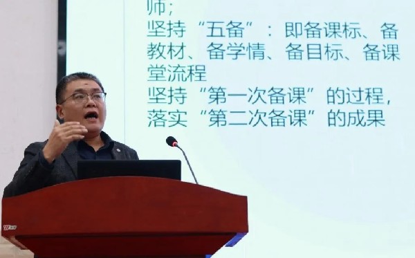 市高中數(shù)學(xué)名師工作室領(lǐng)銜人、市教科所副書記汪濤老師作《提高備課質(zhì)量,建設(shè)高效課堂》引領(lǐng)分享,高度肯定了學(xué)校課程和課堂建設(shè)取得的成績(jī),集體備課備考的嶄新變化,拔尖創(chuàng)新人才貫通培養(yǎng)的有效探索和實(shí)踐。同時(shí),分享了如何提高備課質(zhì)量,建設(shè)高效課堂,提出了“從七個(gè)方面關(guān)注新課堂,備課活動(dòng)八環(huán)節(jié)”的備課方法。