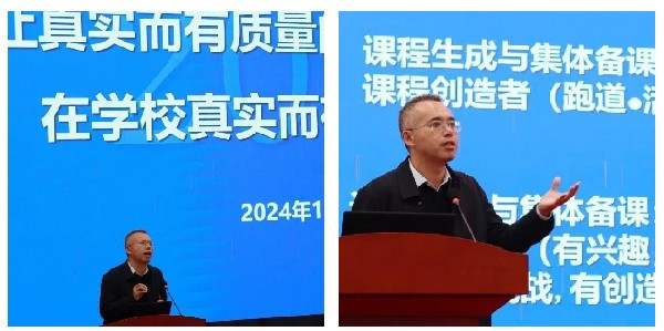 課程與課堂,變革與生長(zhǎng),構(gòu)建基于育人方式轉(zhuǎn)變的課程和基于學(xué)法轉(zhuǎn)變的課堂。高、初中數(shù)學(xué)教研組長(zhǎng)楊子龍老師、王小清老師分別作了專題分享。