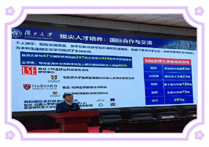 蔣教授就復(fù)旦大學(xué)學(xué)科建設(shè)、“2+X”本科培養(yǎng)方案、交叉實踐人才培養(yǎng)平臺、拔尖人才培養(yǎng)、AI融合創(chuàng)新人才培養(yǎng)、卓越人才培養(yǎng)等方面進(jìn)行了詳細(xì)闡述,同時激勵同學(xué)們矢志不渝,踔厲奮發(fā),勇于追夢。