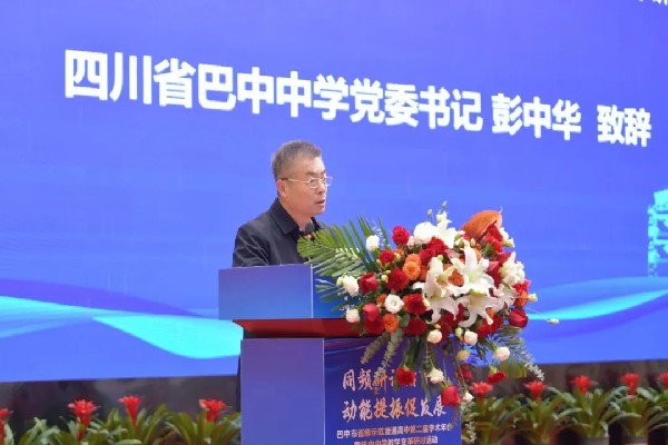 巴中中學黨委書記彭中華致辭。他圍繞教育高質量發(fā)展主題,積極探索“三新”背景下教學變革的方法、路徑、抓手,深刻分析“變”與“不變”的關系、“教”與“學”的深度,通過“借智增能”行動找到巴中普通高中教育改革的著力點和支撐點,不斷提高市域教育教學水平。