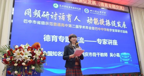 29日上午德育專題交流活。特邀全國知名班主任、重慶市骨干教師吳小霞作德育教育專題講座,還邀請家長現(xiàn)場分享親子教育故事、交流家庭教育心得。巴中中學副校長黃軍祥主持德育交流活動。