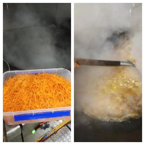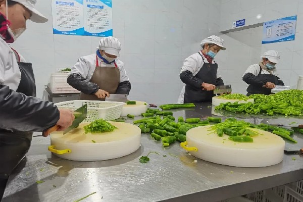 活動當(dāng)天上午,食堂內(nèi)熱鬧非凡,各路大廚忙碌有序,查驗(yàn)、挑揀、清洗、切配等流程清晰,操作規(guī)范。瘦肉絲、五花肉片、雞塊、豆腐、青椒、胡蘿卜、青筍、木耳、蔥、姜、蒜等新鮮食材及佐料已陸續(xù)準(zhǔn)備妥當(dāng),靜待大廚們烹制指定的麻婆豆腐、魚香肉絲和一道自選菜品。