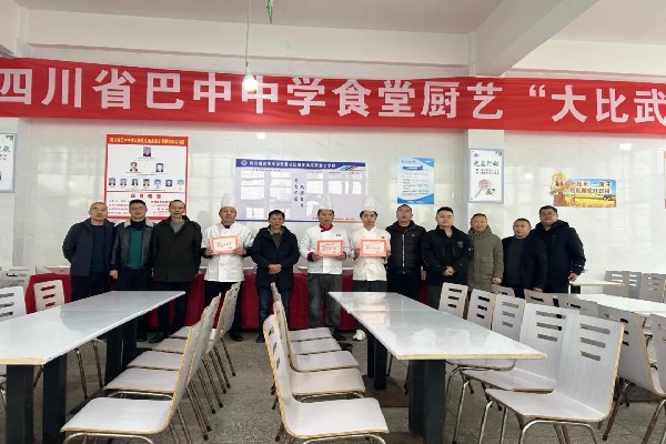 2024年歲末,巴中中學(xué)龍湖、興文、云屏三校區(qū)由膳食中心主任領(lǐng)隊(duì),各選派一名廚師齊聚云屏校區(qū),開展廚藝大比武活動,同臺競技提升廚藝水平。